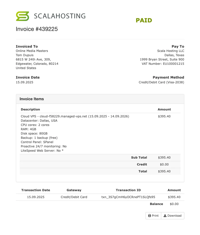 • The new price of $52/month includes $27/month for ScalaHosting’s Build #1 VPS (invoice) + $25/month for FlyingCDN (invoice).